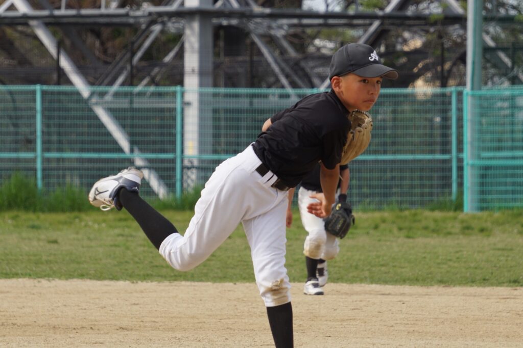 その裏、Aチームはピッチャーをソウタに代えます。先頭バッターをショートゴロに打ち取りますが、続くバッターにフォアボールを出してしまいます…続くバッターは抑えますが、ランナーが進み2アウト2塁のピンチ。